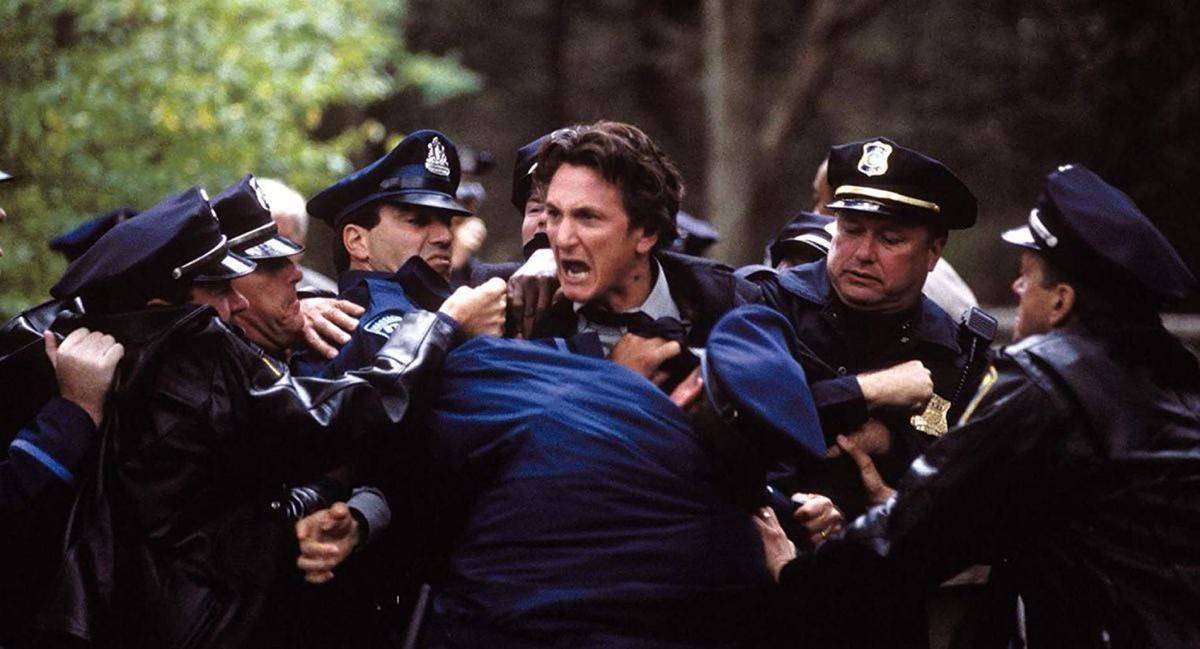 最后,被悲痛冲昏头的他,认定童年好友戴夫是凶手,逼他屈打成招,承诺留他一命,最终却还是下了杀手。