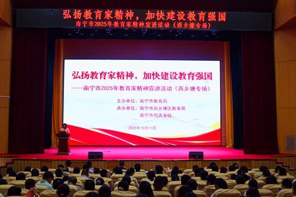 10月11日上午,南宁市2025年教育家精神宣讲活动(西乡塘区专场)在明天学校安吉校区礼堂举行,辖区各公民办中小学、幼儿园教师代表200余人参加此次活动,共同聆听教育一线的初心故事。