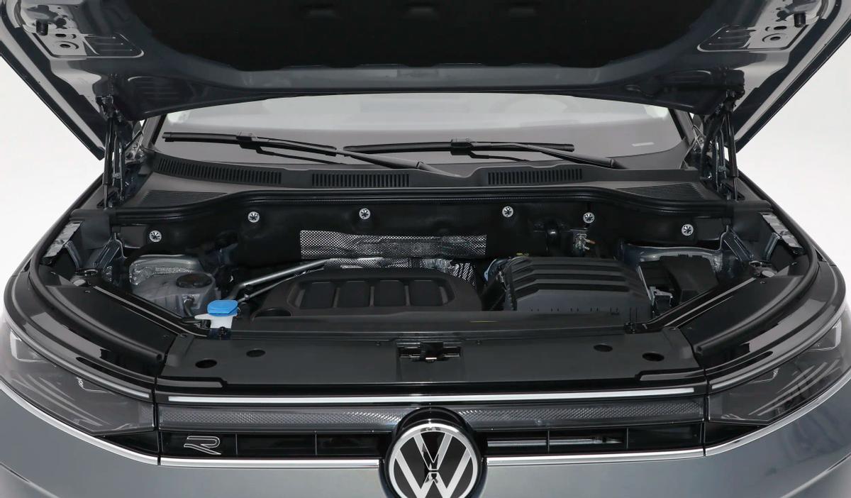 从前脸上来看,揽巡虽说换上了更大尺寸的下格栅结构,但随着隐藏了部分照明系统的贯穿面板到来,前脸上的风格其实在朝着更新能源化的方向发展,或者可以把这种风格描述成不少用户所说的“电感”。而且在这个拥有R-Line套件的版本上看,无论是纵向带辅助光带的装饰结构,还是带银色运动护板的前保险杠, 其实这张脸也都在变得更年轻简洁起来。